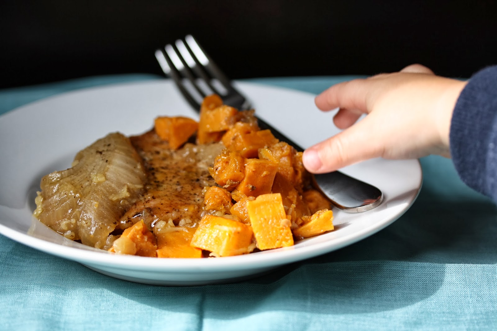 Hot Dinner Happy Home Slow Cooker Pork Chops with Apples and Sweet